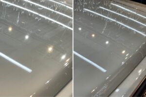 ガラスコーティングの硬化型はコーティング被膜が膜を張り塗装面に結合します。一度硬化したガラスコーティングの被膜は自然に剥がれなくなります。剥がすには研磨剤を使用して磨かなければ剥がせないほど強固な被膜を形成するため、圧倒的な耐久性を実現するのが硬化型ガラスコーティングとなります❗️
